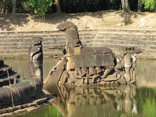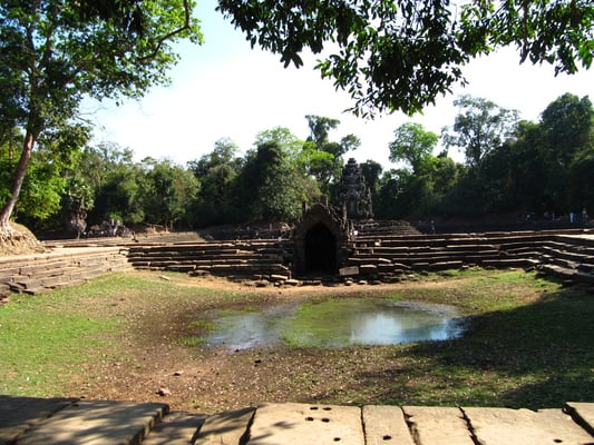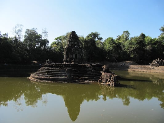 Neak Pean ist eine künstliche Insel im Zentrum des mittlerweile trockenen Nördlichen Baray, eines künstlichen Staubeckens. Entstanden Ende des 12. Jahrhunderts unter König Jayavarman VII.
