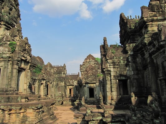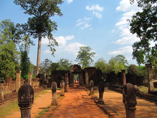Die buddhistische Tempelanlage Preah Khan („Heiliges Schwert“), ist vermutlich das Relikt einer provisorischen Hauptstadt. Die Anlage aus dem späten 12. Jahrhundert zählt zu den formenreichsten und bedeutendsten Flachtempeln des Kulturkreises.