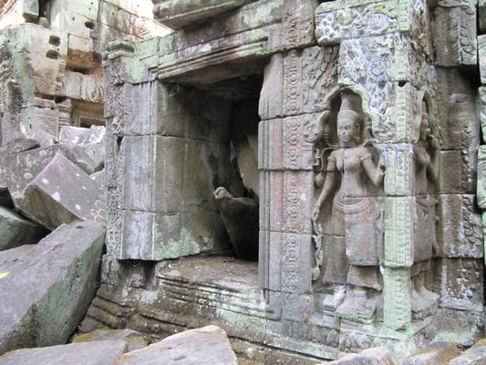 Erbaut 1186 von König Jayavarman VII und unrestauriert belassen nach seiner Wiederentdeckung. Der Gebäudekomplex ist eine aufgegebene Tempelanlage bestehend aus Tempel, Kloster, weiteren kleineren Gebäuden und der umgebenden Mauer mit Ecktürmen und Eingangspavillon.